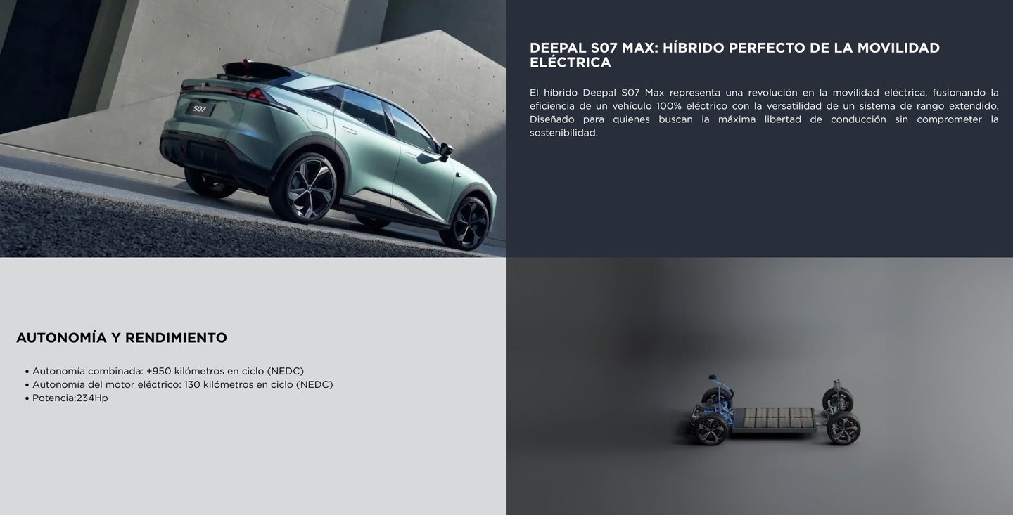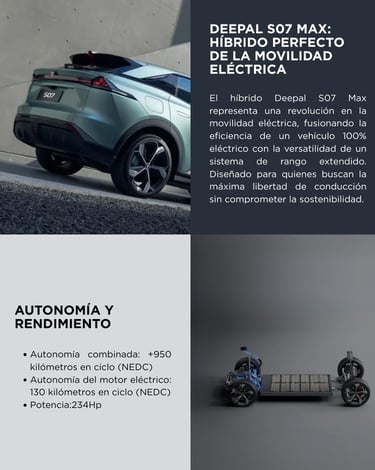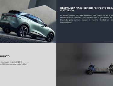 El Deepal S07 Max 520 km es un SUV eléctrico mediano que combina diseño deportivo, alto rendimiento y gran autonomía. Con su batería de 68,82 kWh, alcanza hasta 520 km de autonomía CLTC, ofreciendo un equilibrio entre movilidad urbana y viajes largos