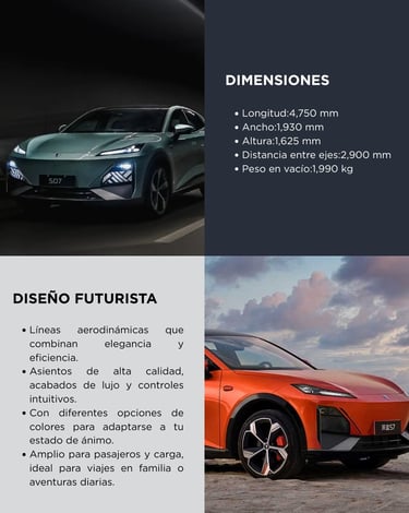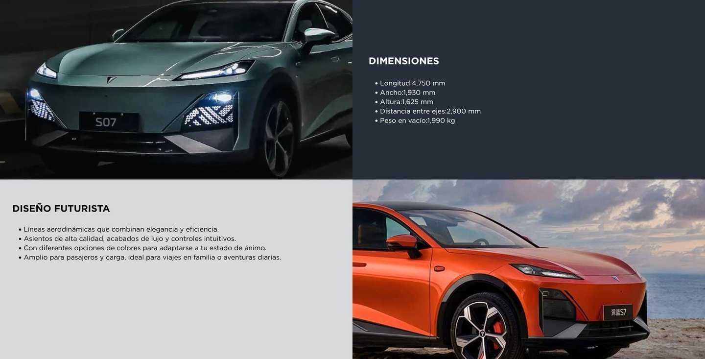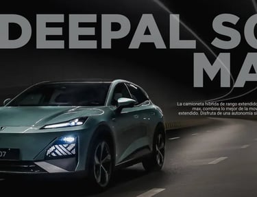 El Deepal S07 Max 520 km es un SUV eléctrico de tamaño mediano que combina estilo moderno, confort y tecnología avanzada. Equipa una batería de 68,82 kWh que entrega hasta 520 km de autonomía CLTC. Su motor eléctrico alcanza 258 hp, con aceleración de 0–100 km/h en unos 7,5 segundos y tracción trasera.