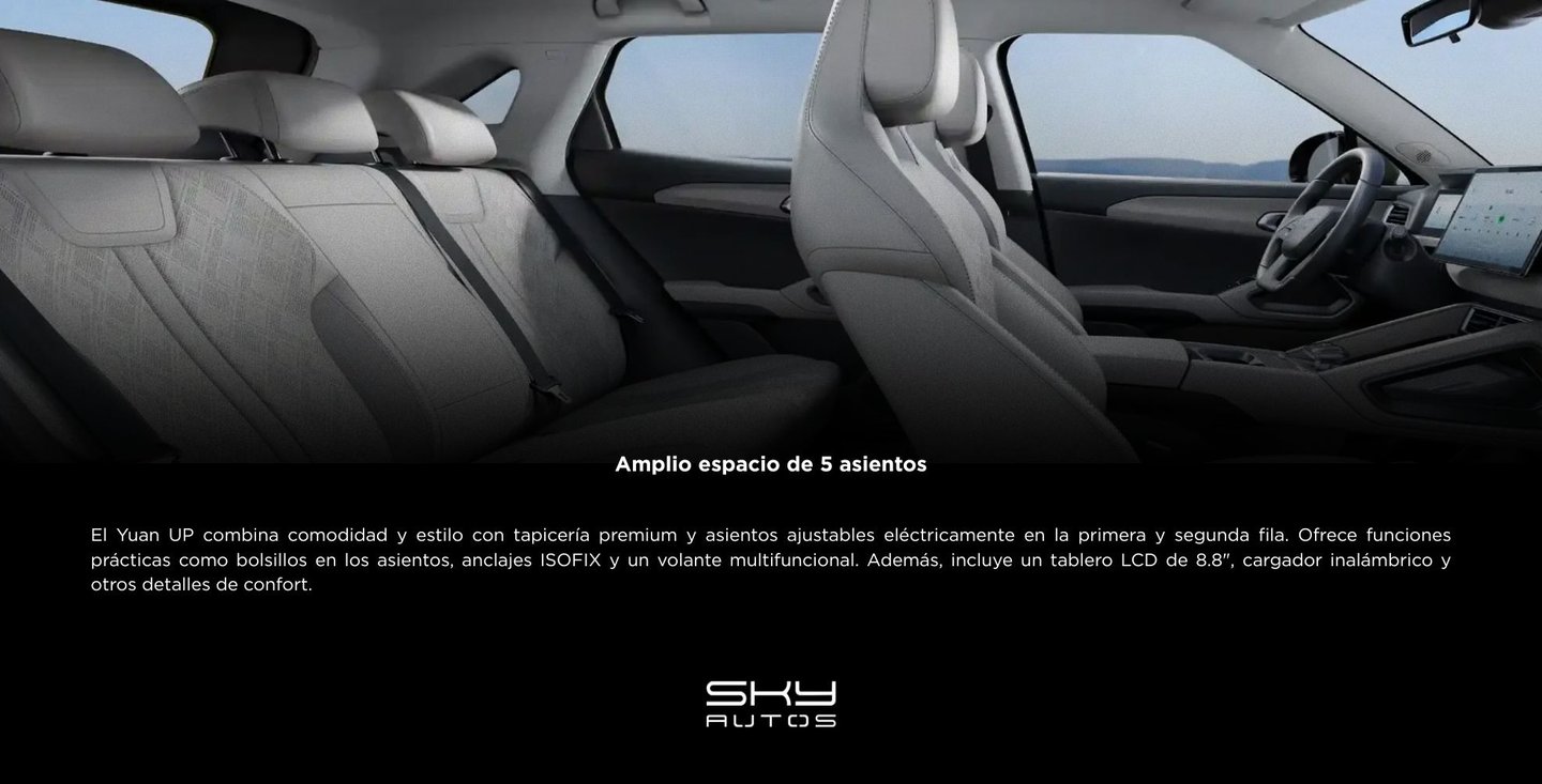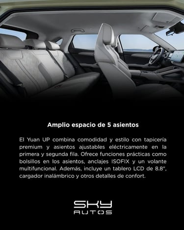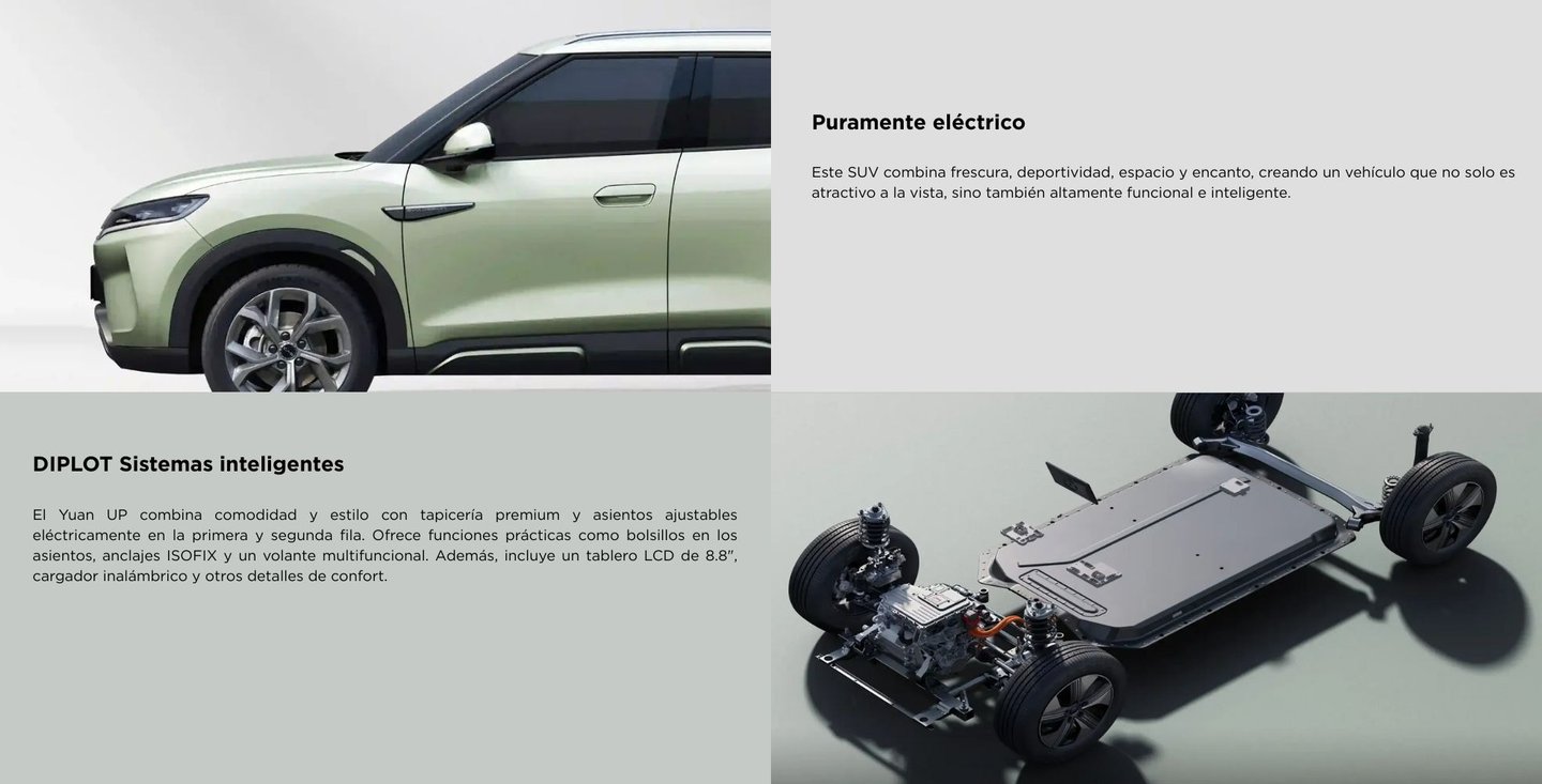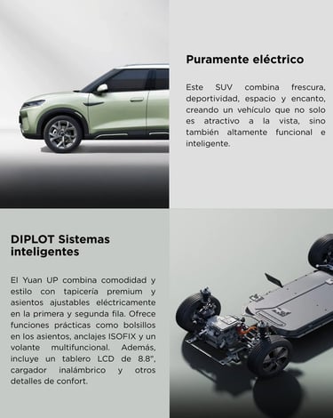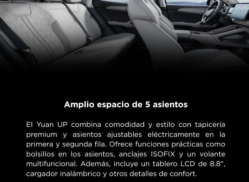 El BYD Yuan UP Beyond Edition 405 km es un SUV eléctrico compacto que combina un diseño juvenil con un desempeño eficiente. Con batería de 45,12 kWh, alcanza hasta 401 km de autonomía CLTC, ideal para movilidad urbana y trayectos intermedios.